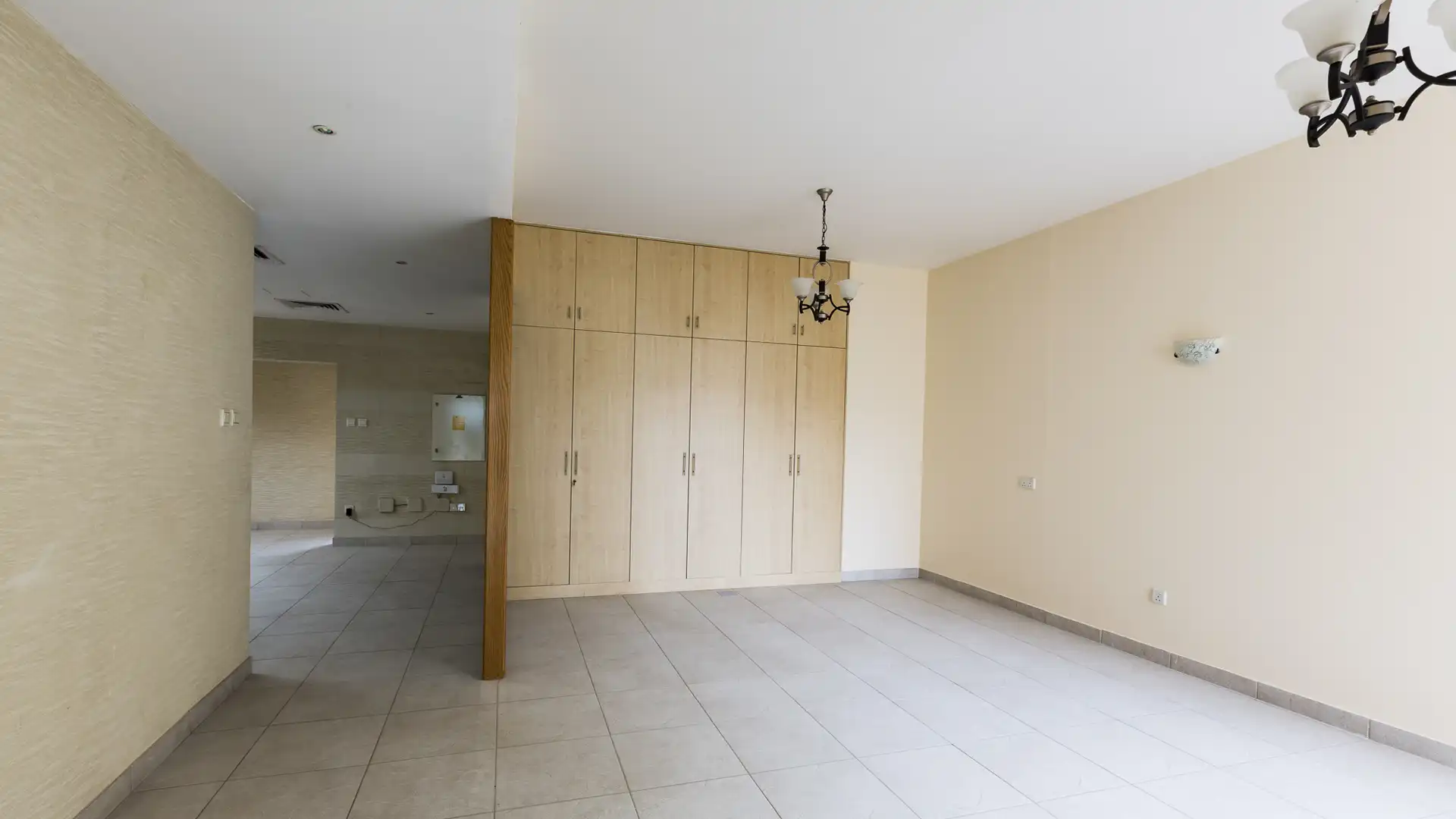 The property’s layout includes four bedrooms, a maid’s room, and a total built-up area of 4,893 sqft. The single-row design adds an element of privacy to the villa, creating a sense of exclusivity. Each of the five bathrooms is thoughtfully designed and complements the aesthetic of the bedrooms. The built-in wardrobes enhance storage space and contribute to the overall organization of the living areas.