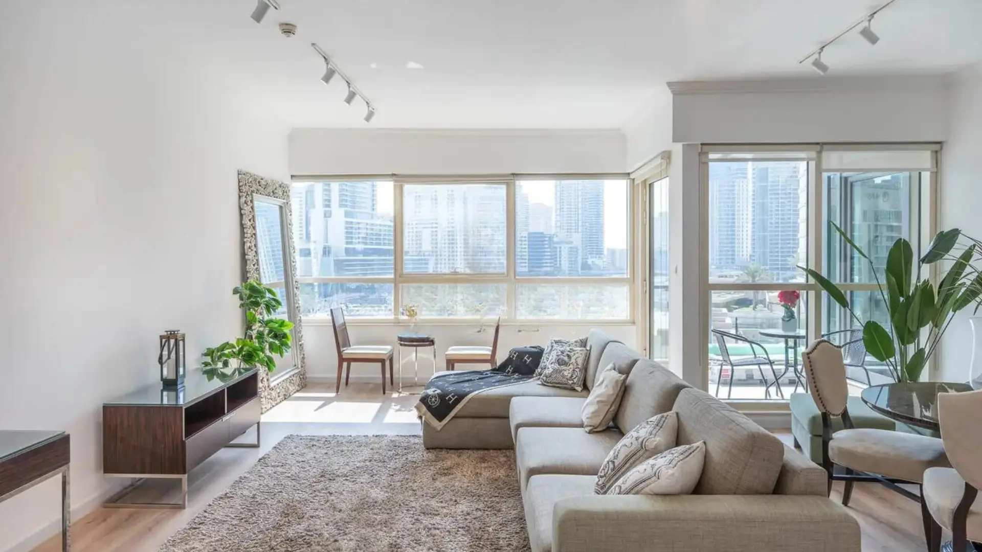 The building offers a range of amenities and features, such as visitor parking for the community, direct access to the scenic Marina Walk, a shared gym and swimming pool, and the added convenience of being within walking distance of both the Metro and Tram Station. Closeness to local shops and restaurants and a mere 5-minute walk to the vibrant JBR Walk make this an even more desirable location. Additional highlights include a fitness club, outdoor terraces, beautifully landscaped courtyards, private gardens, and the reassurance of 24-hour security and concierge services. For leisure and entertainment, residents can enjoy playing rooms and a Hollywood-style home theater setting, adding to the charm of this residential complex.