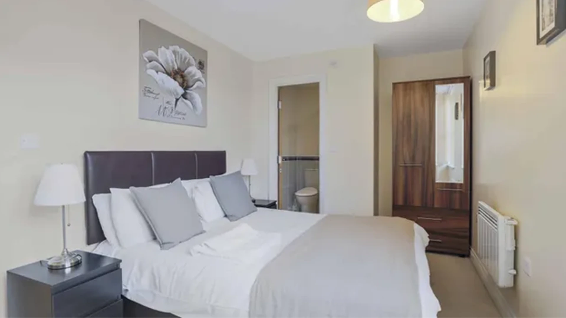 There’s a good-sized living area upstairs for relaxing and spending time together. Two bedrooms are a good size and share a bathroom, which is handy for family or guests. But the best part is the master bedroom. It has an enormous walk-in closet, a luxurious bathroom, and a large balcony to enjoy the view of the garden and the peaceful neighborhood.