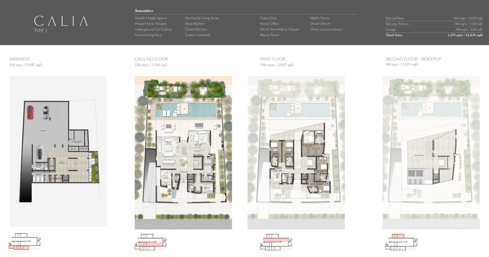 Calia Beach Collection offers a grand 5 and 6-bedroom Elysian Mansion with modern designs developed by Majid Al Futtaim in Tilal Al Ghaf, promising a luxury living experience. Live in comfort and style, where every corner displays elegance and makes everyday life easy.