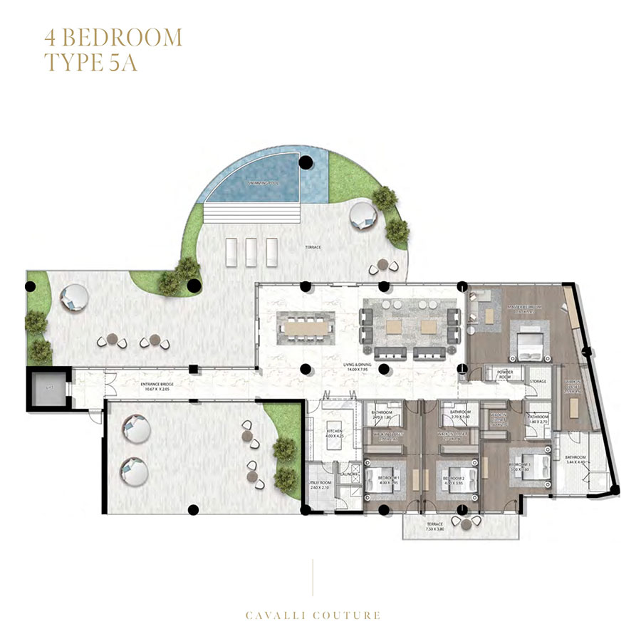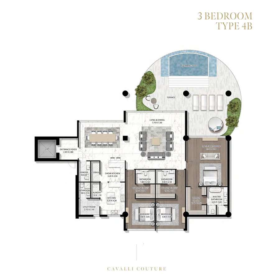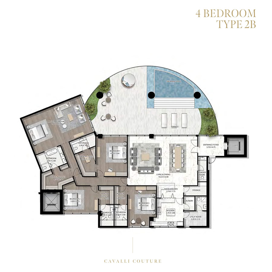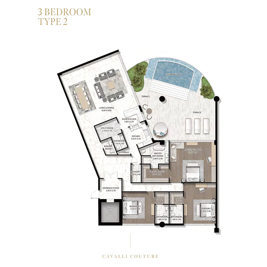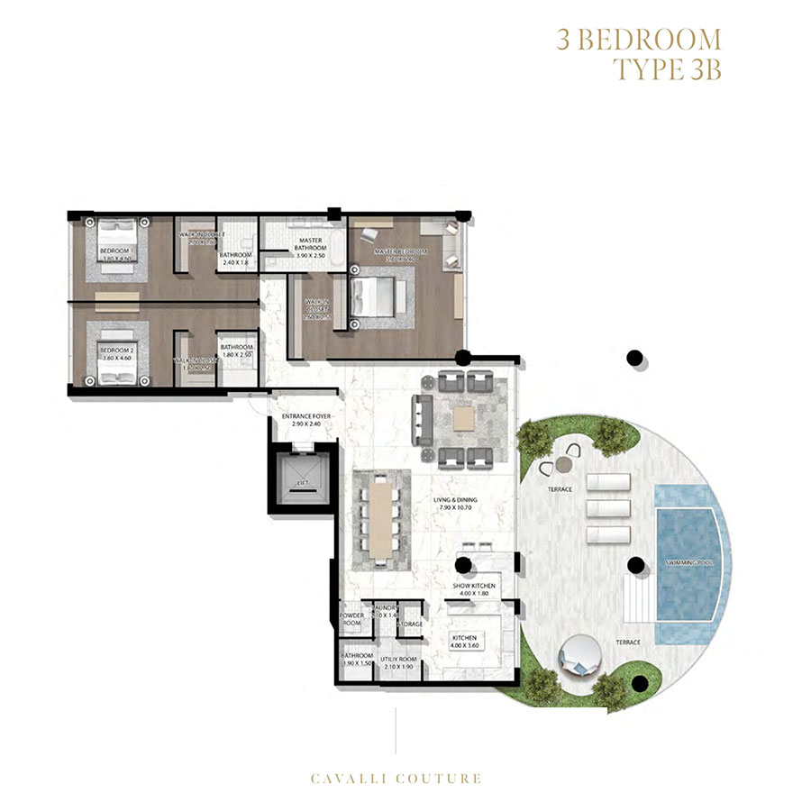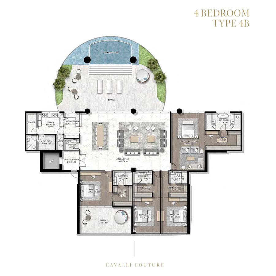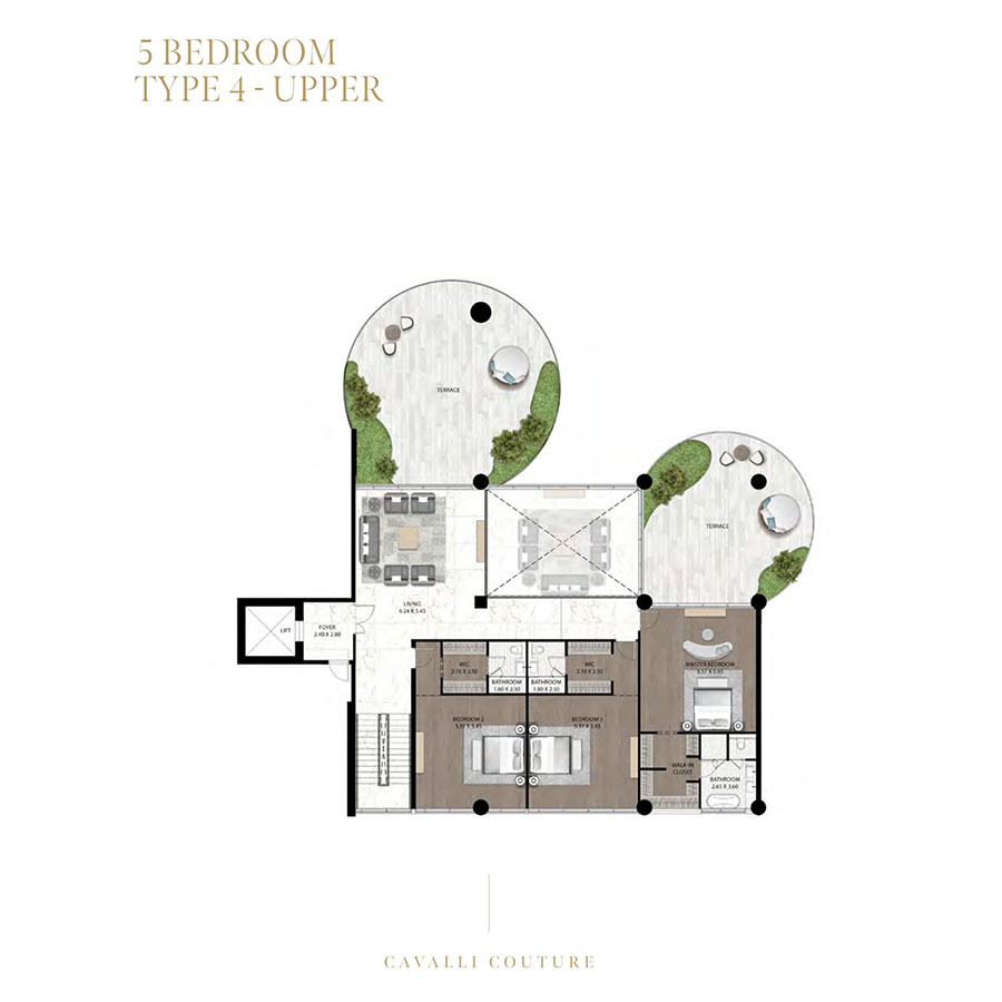 Cavalli Couture offers 3, 4 & 5 bedroom apartments with modern designs developed by Damac properties, promising a luxury living experience. Live in comfort and style, where every corner displays elegance and makes everyday life easy.
