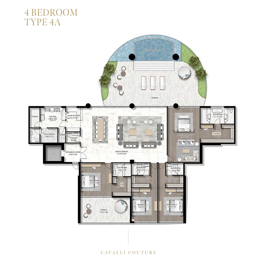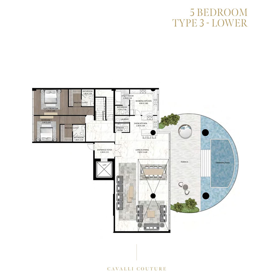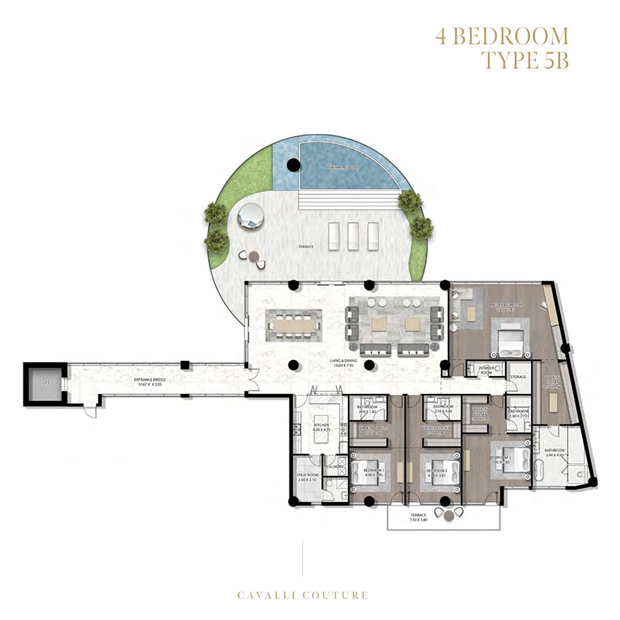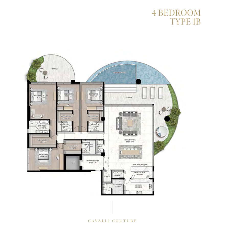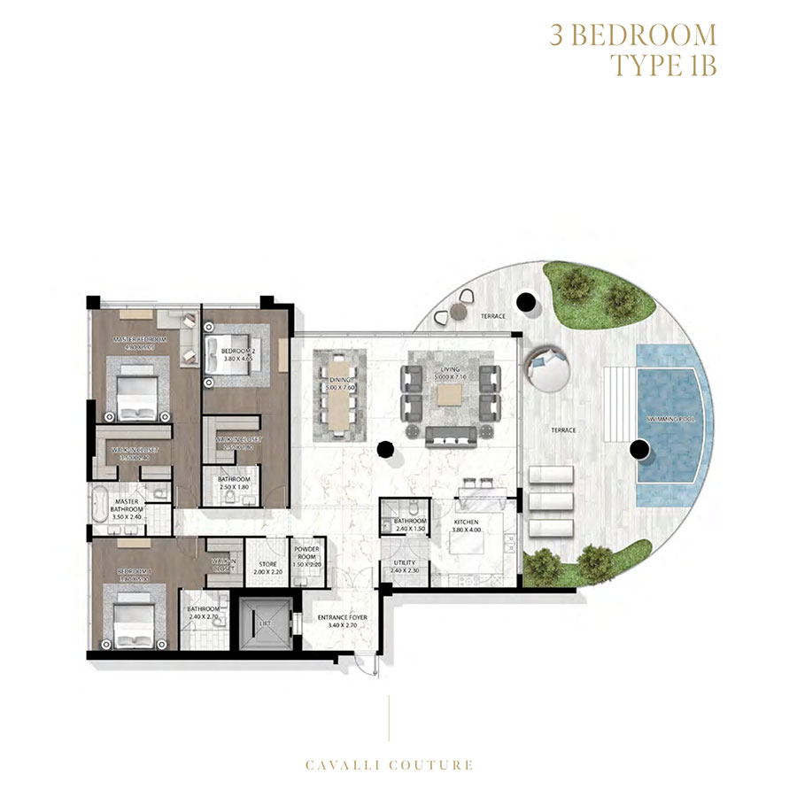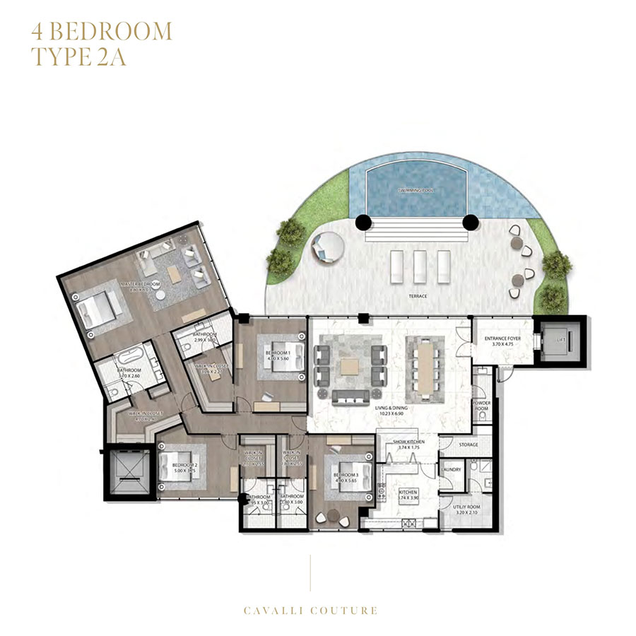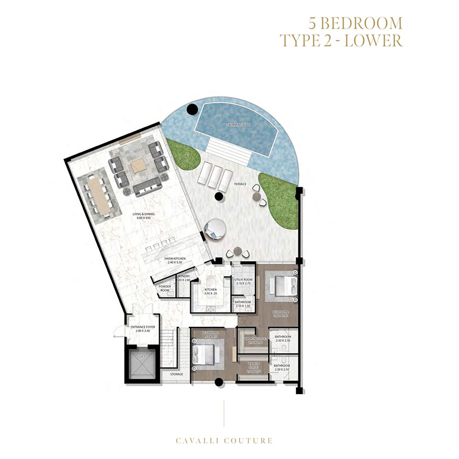 Cavalli Couture offers 3, 4 & 5 bedroom apartments with modern designs developed by Damac properties, promising a luxury living experience. Live in comfort and style, where every corner displays elegance and makes everyday life easy.