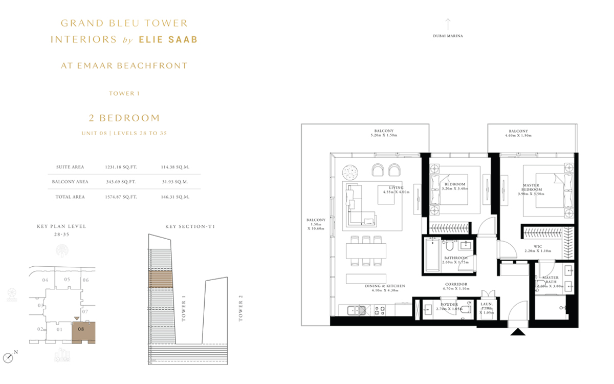 Tower 1 2 Bedrooms 2 BR, Unit 8, Level 28 to 35 1574.00 Sq Ft Apartment