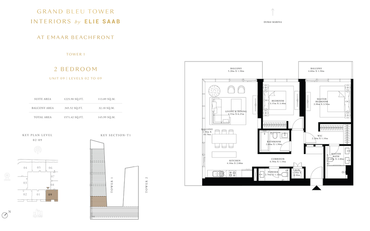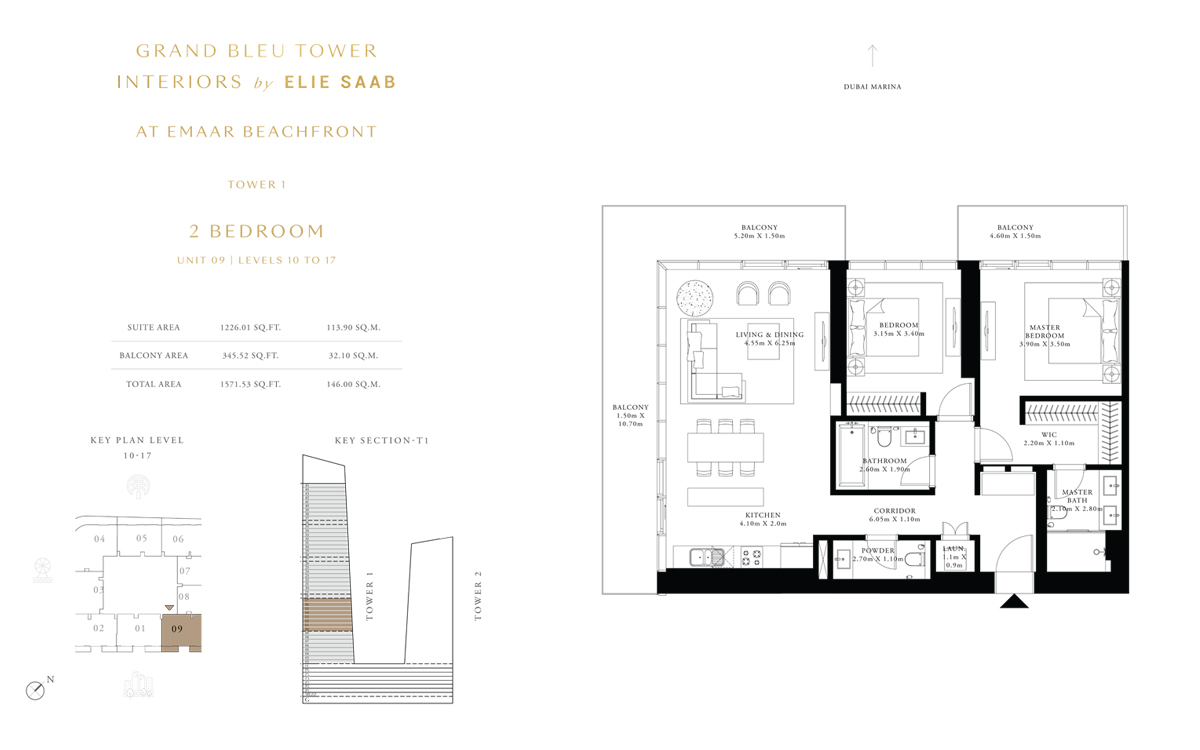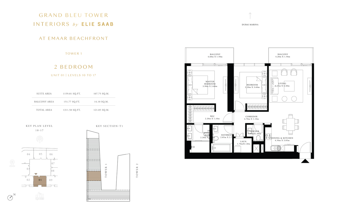 Tower 1 2 Bedrooms 2 BR, Unit 9, Level 10 to 17 1571.00 Sq Ft Apartment