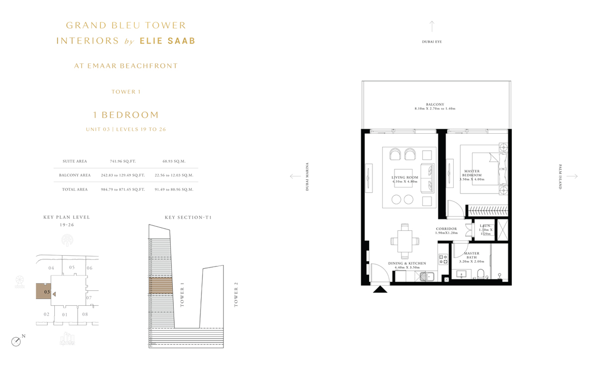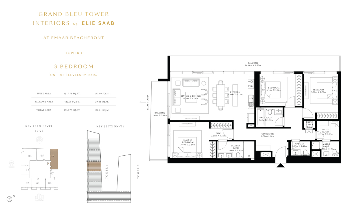 Tower 1 3 Bedrooms 3 BR, Unit 6, Level 19 to 26 1939.00 Sq Ft Apartment