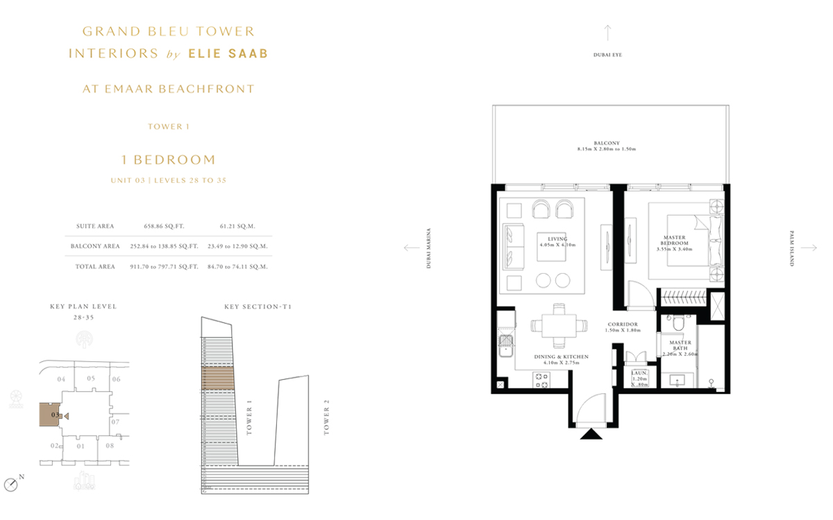 Tower 1 1 Bedroom 1 BR, Unit 3, Level 28 to 35 911.00 Sq Ft Apartment