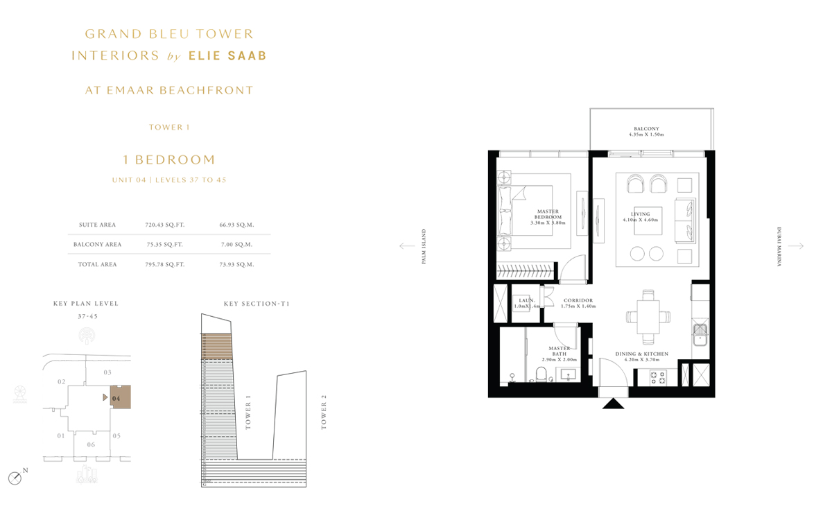 Tower 1 1 Bedroom 1 BR, Unit 4, Level 37 to 45 795.00 Sq Ft Apartment