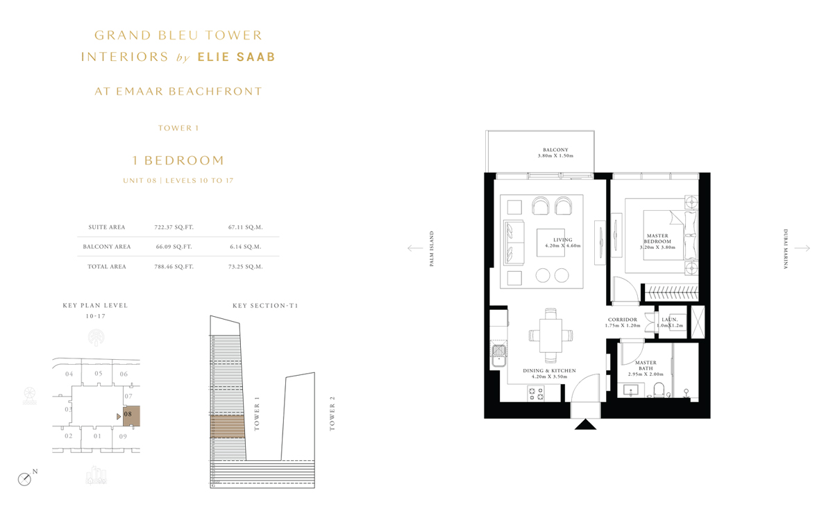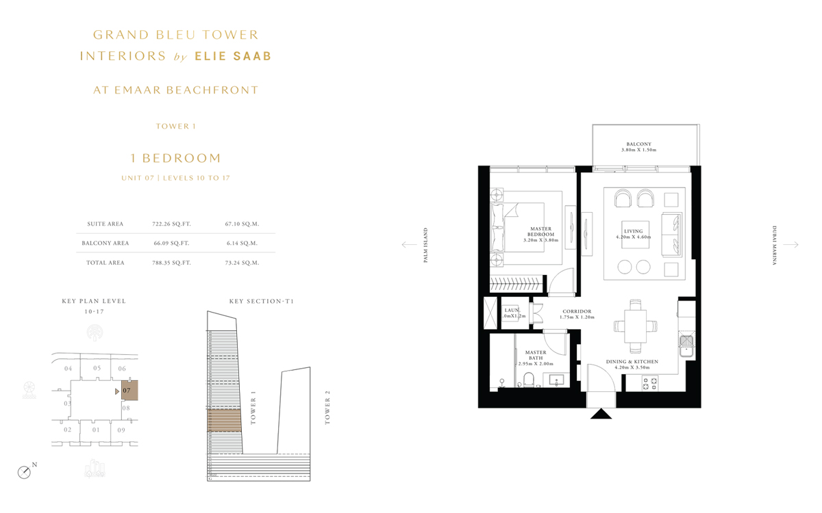 Tower 1 1 Bedroom 1 BR, Unit 7, Level 10 to 17 788.00 Sq Ft Apartment