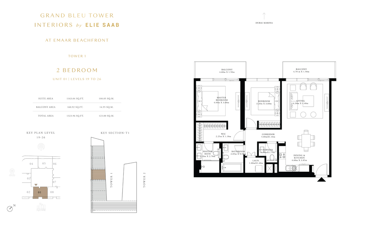 Tower 1 2 Bedrooms 2 BR, Unit 1, Level 19 to 26 1323.00 Sq Ft Apartment