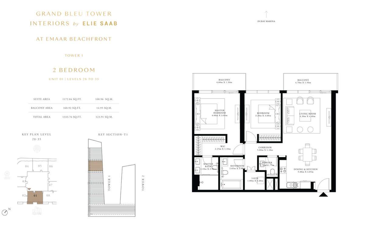 Tower 1 2 Bedrooms 2 BR, Unit 1, Level 28 to 35 1333.00 Sq Ft Apartment