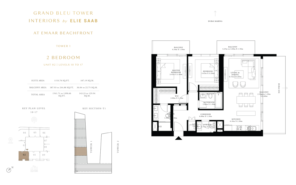 Tower 1 2 Bedrooms 2 BR, Unit 2, Level 10 to 17 1541.00 Sq Ft Apartment