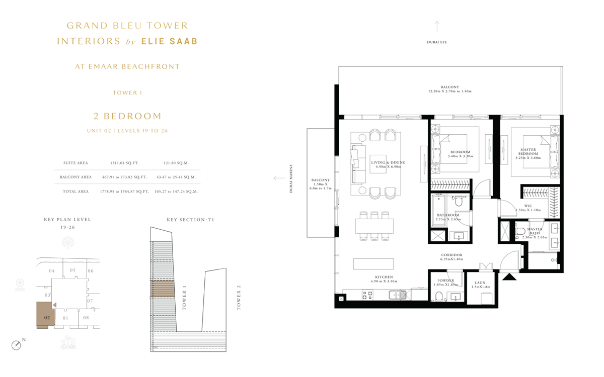 Tower 1 2 Bedrooms 2 BR, Unit 5, Level 19 to 26 1311.00 Sq Ft Apartment