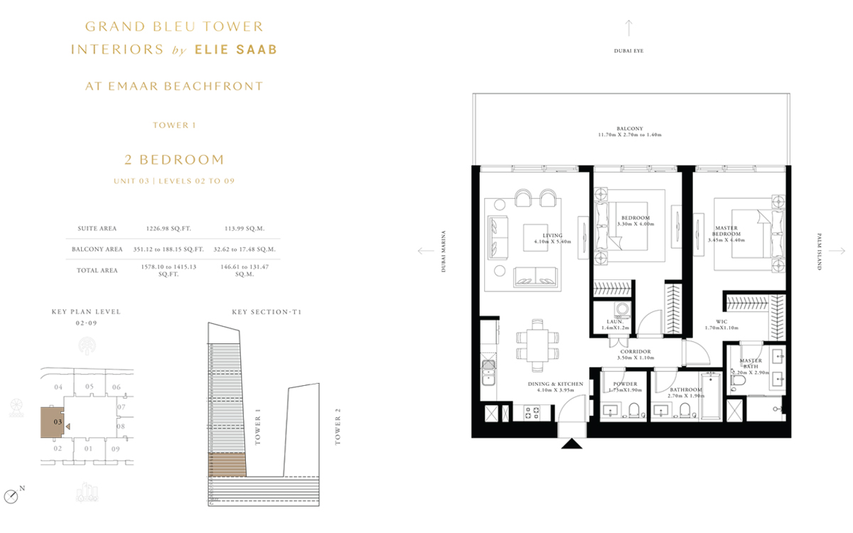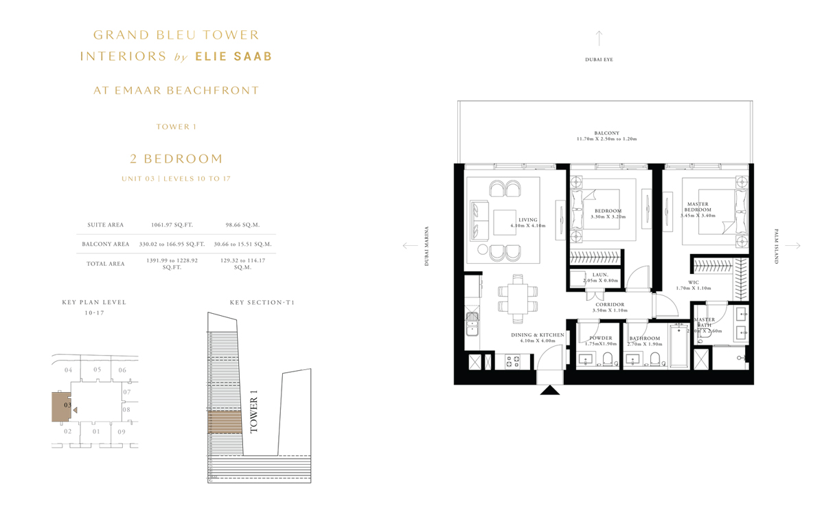 Tower 1 3 Bedrooms 3 BR, Unit 3, Level 37 to 45 2071.00 Sq Ft Apartment