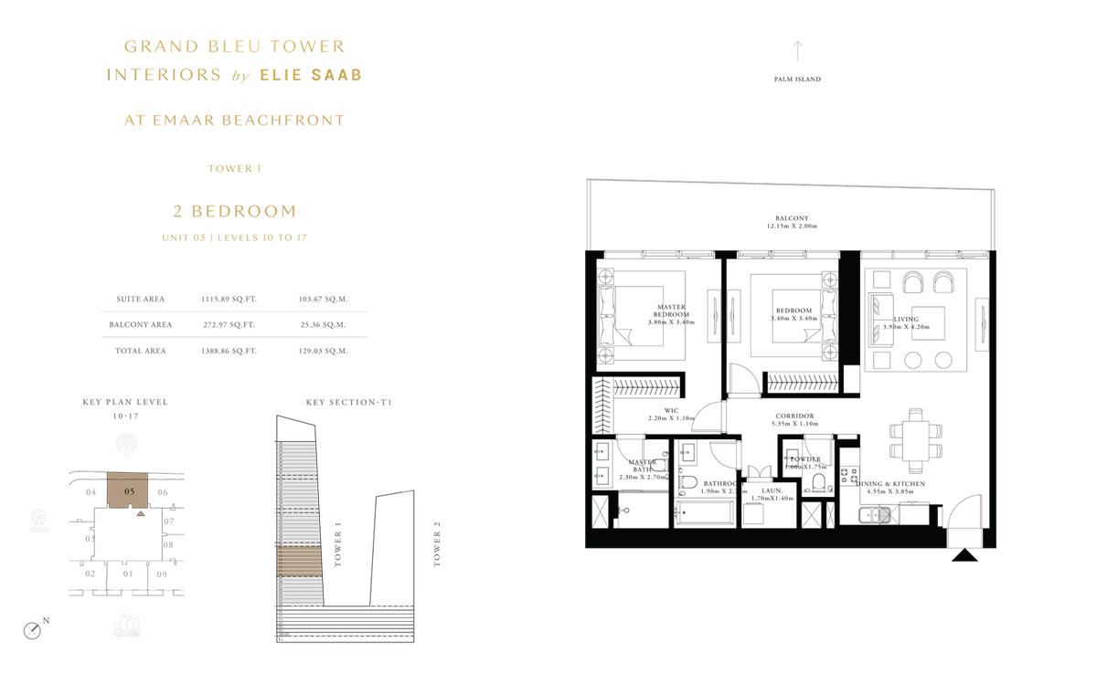 Tower 1 2 Bedrooms 2 BR, Unit 5, Level 10 to 17 1388.00 Sq Ft Apartment