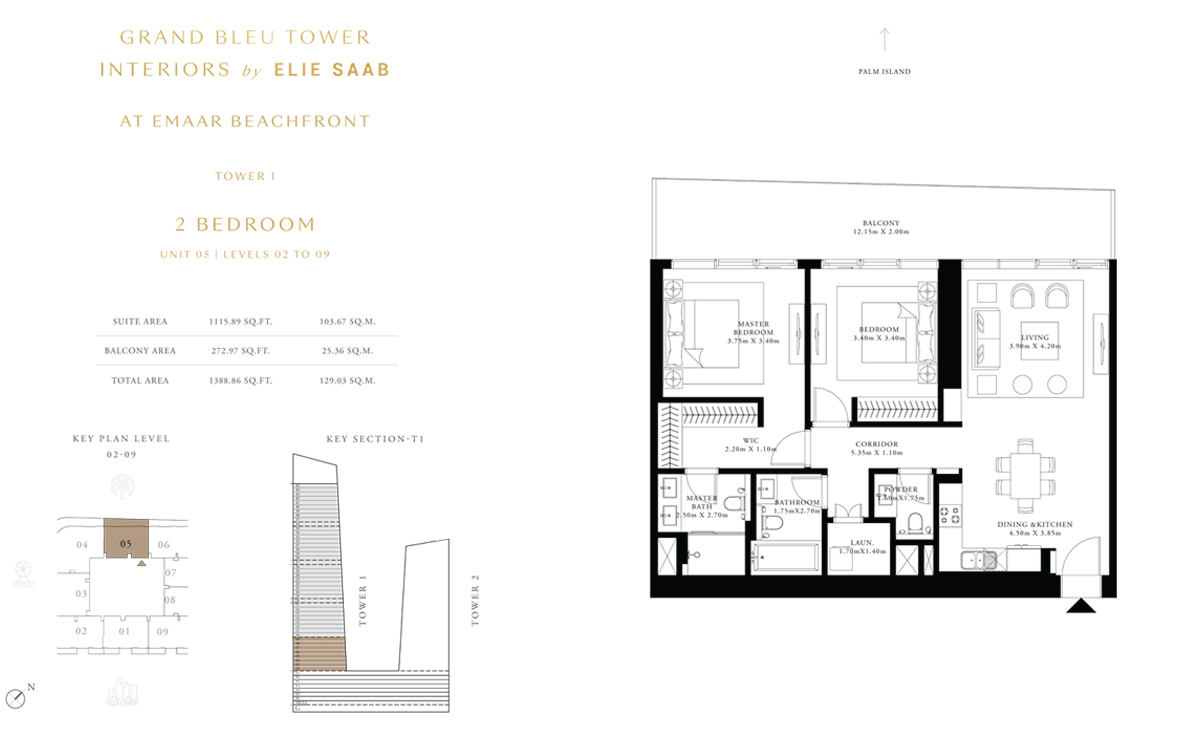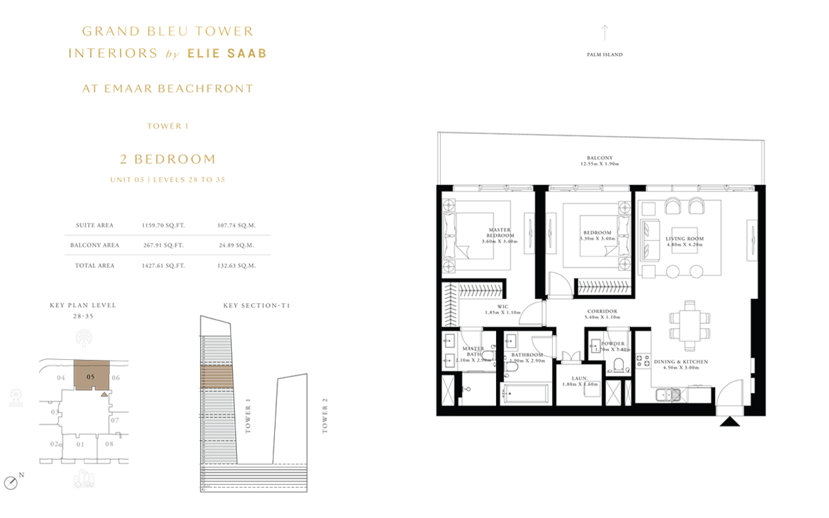 Tower 1 2 Bedrooms 2 BR, Unit 5, Level 28 to 35 1427.00 Sq Ft Apartment