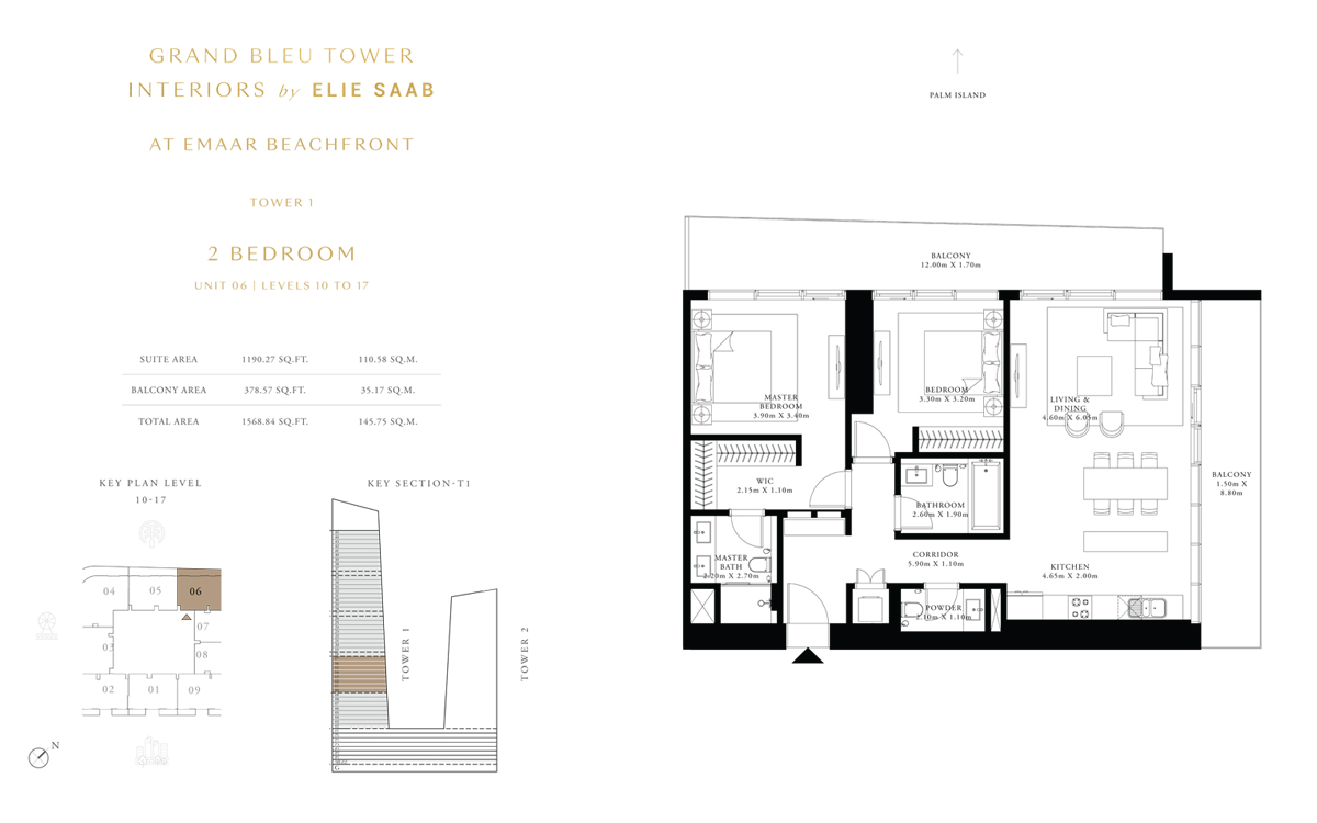 Tower 1 2 Bedrooms 2 BR, Unit 6, Level 10 to 17 1568.00 Sq Ft Apartment