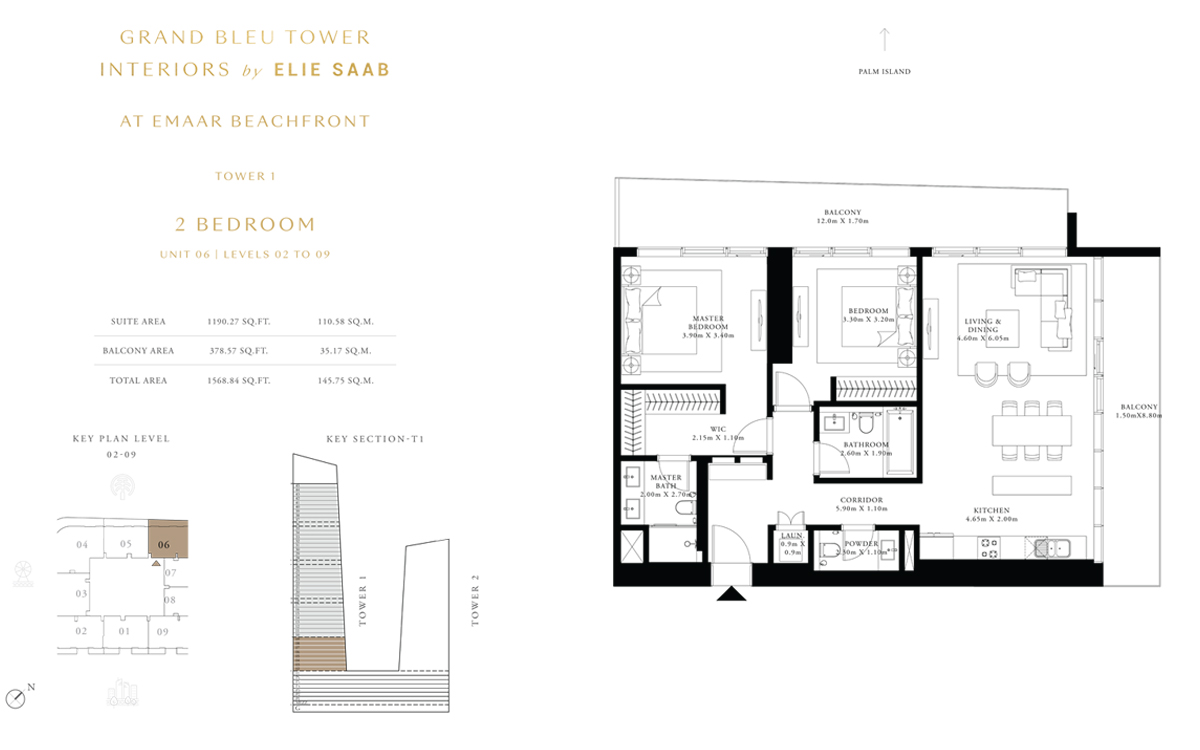Tower 1 2 Bedrooms 2 BR, Unit 6, Level 2 to 9 1568.00 Sq Ft Apartment