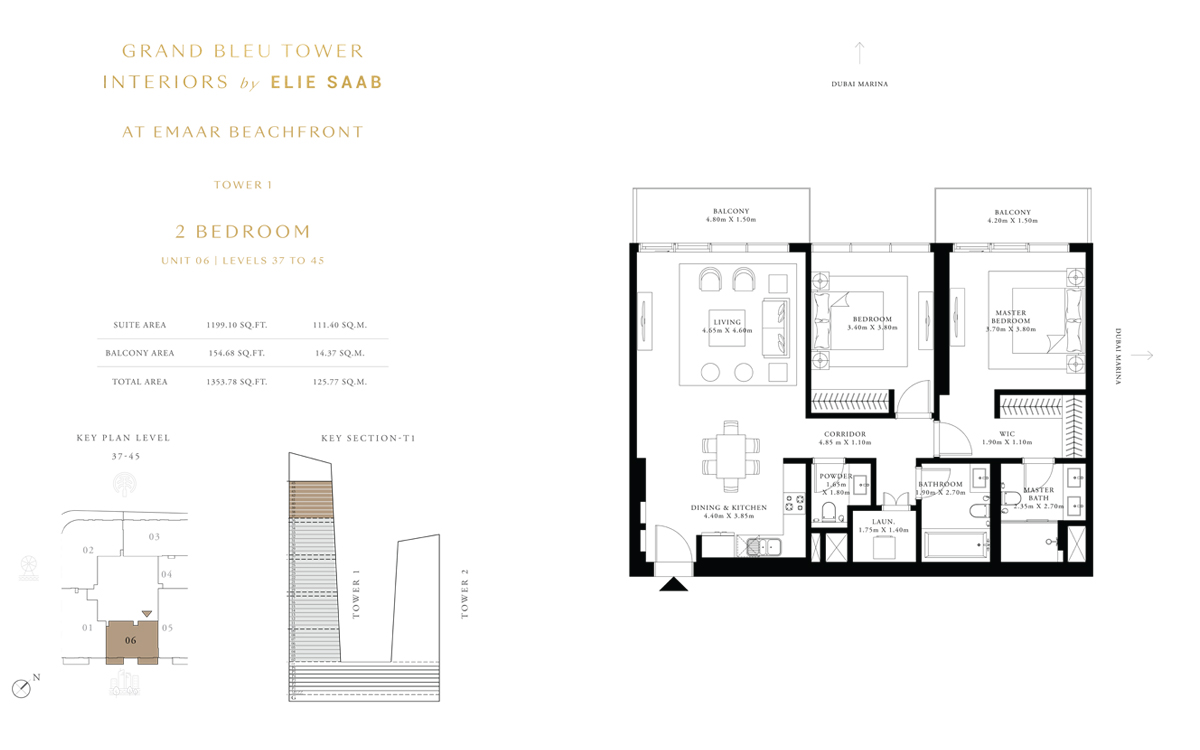 Tower 1 2 Bedrooms 2 BR, Unit 6, Level 37 to 45 1353.00 Sq Ft Apartment