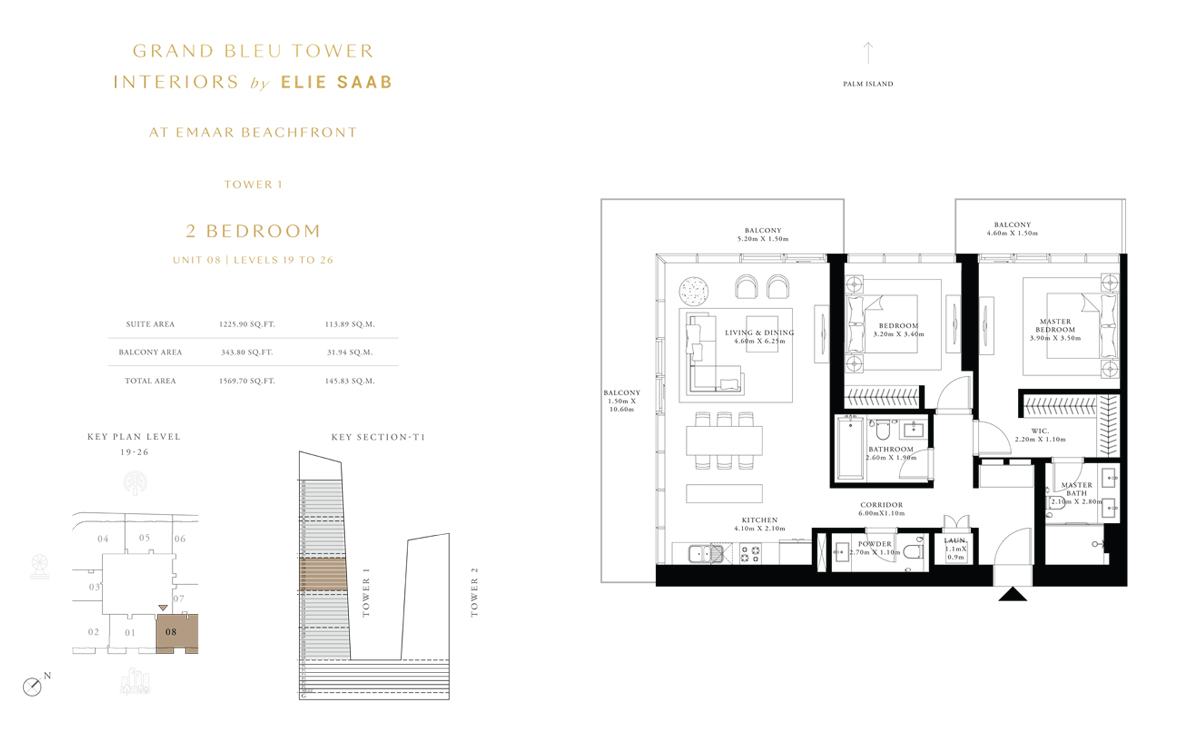 Tower 1 2 Bedrooms 2 BR, Unit 8, Level 19 to 26 1569.00 Sq Ft Apartment