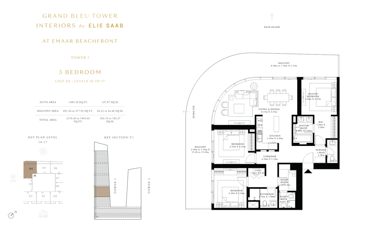 Tower 1 3 Bedrooms 3 BR, Unit 4, Level 10 to 17 2176.00 Sq Ft Apartment