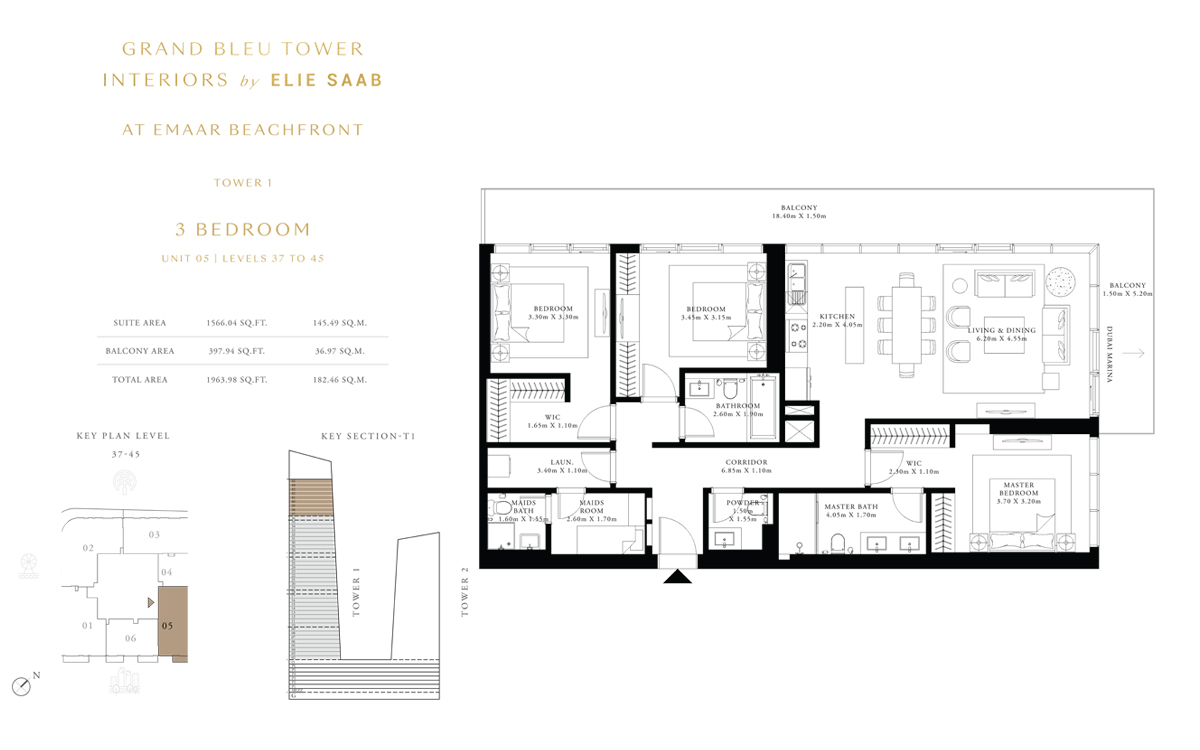 Tower 1 3 Bedrooms 3 BR, Unit 5, Level 37 to 45 1963.00 Sq Ft Apartment