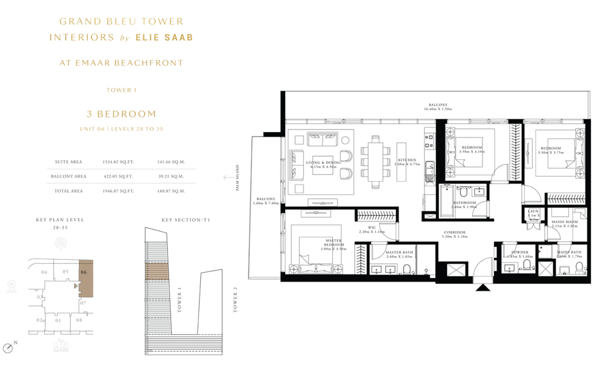 Tower 1 3 Bedrooms 3 BR, Unit 6, Level 28 to 35 1946.00 Sq Ft Apartment