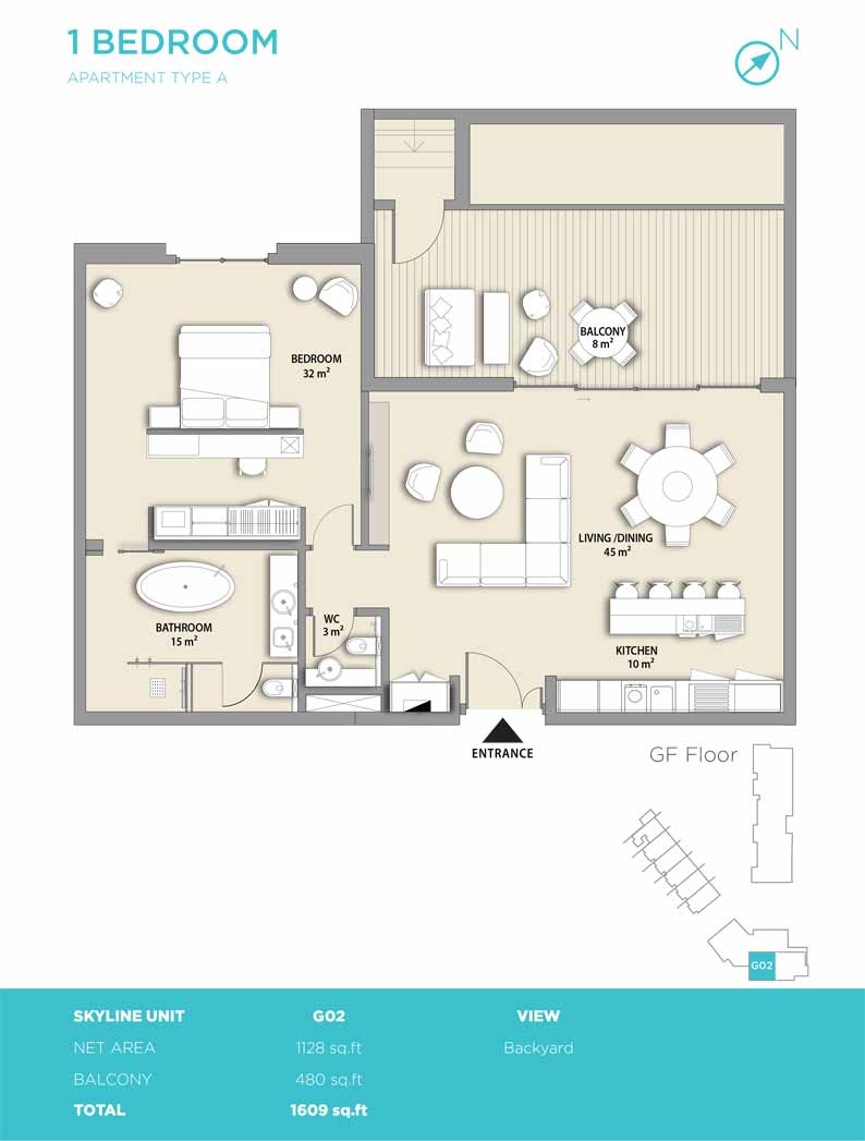 | 1 Bedroom | All | 1 bedroom type A 1609 | 1609.00 Sq Ft | Apartment | |