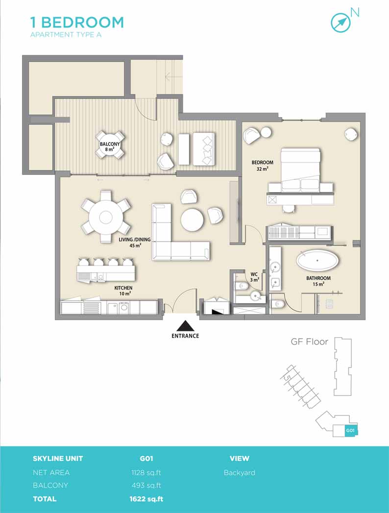 | 1 Bedroom | All | 1 bedroom type A 1622 | 1622.00 Sq Ft | Apartment | |