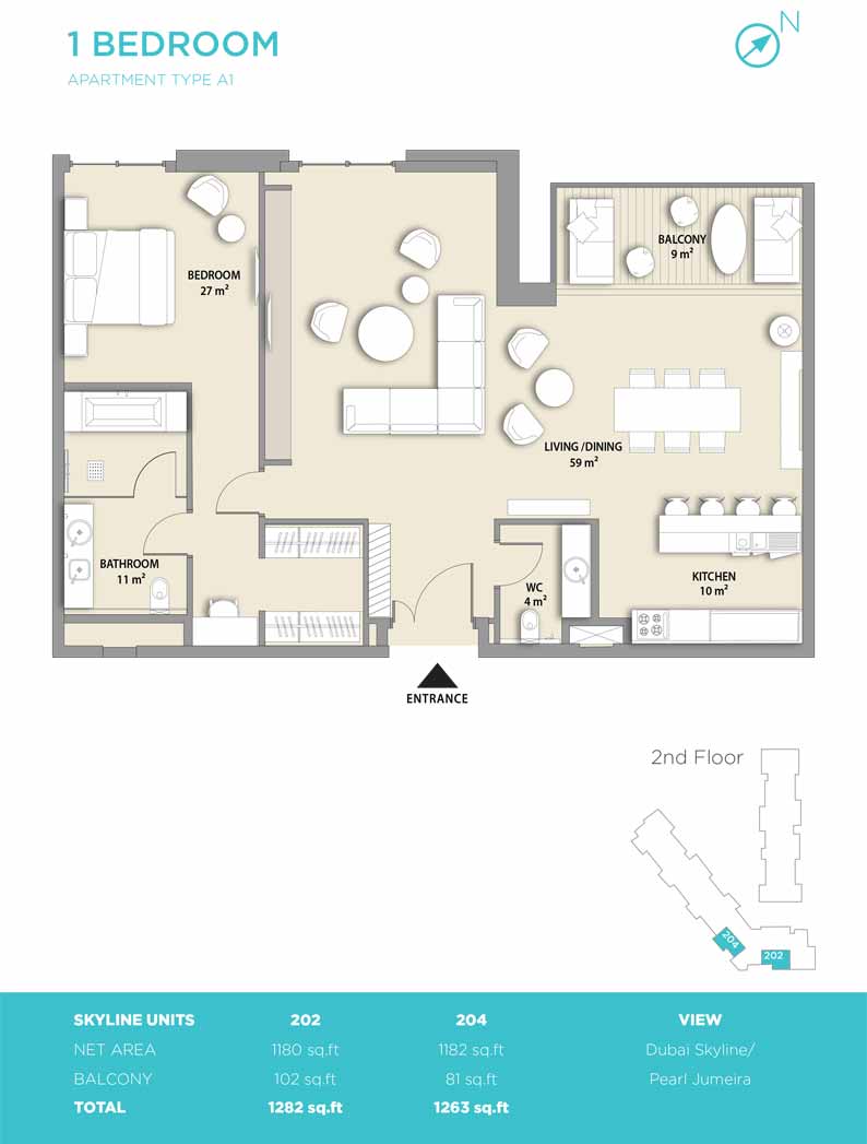 | 1 Bedroom | All | 1 bedroom type A1 1282 | 1282.00 Sq Ft | Apartment | |