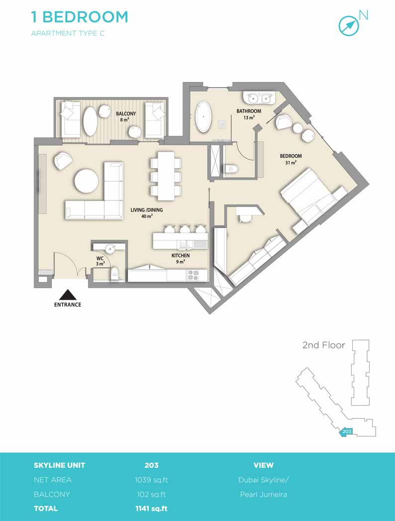 | 1 Bedroom | All | 1 bedroom type C 1141 | 1141.00 Sq Ft | Apartment | |