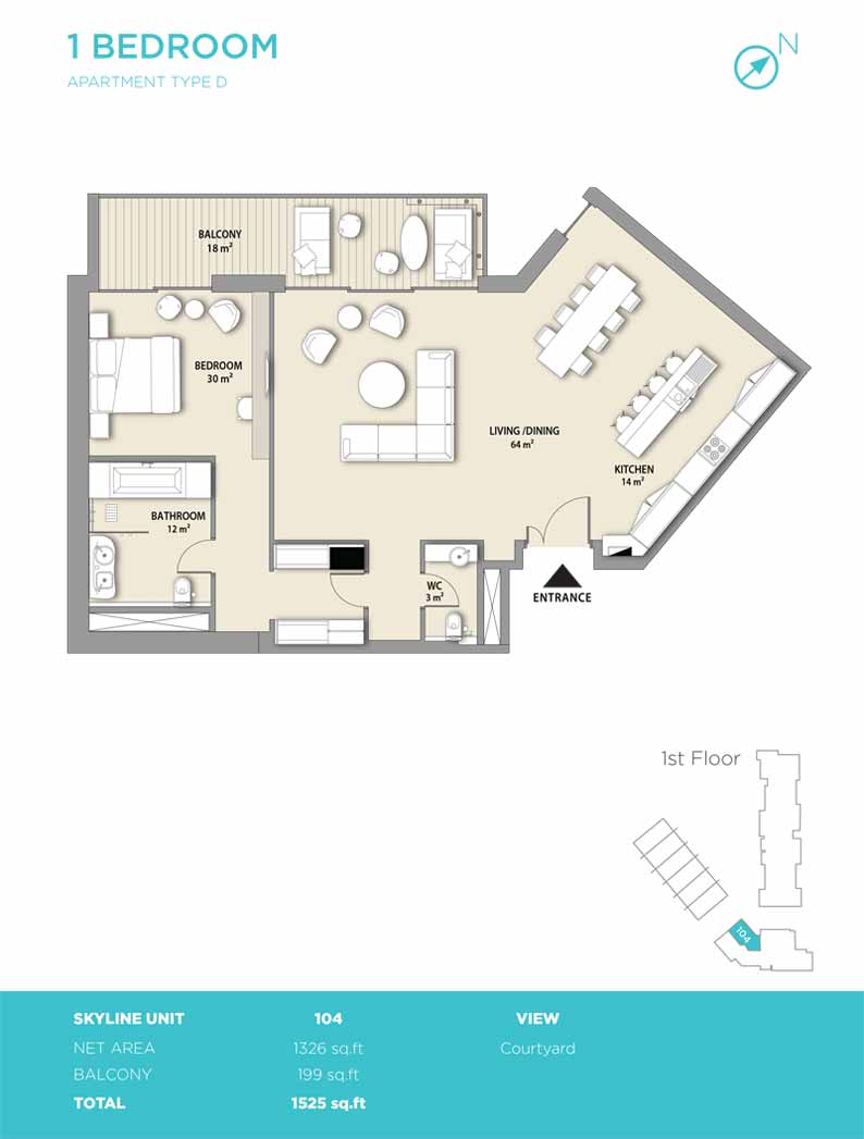 | 1 Bedroom | All | 1 bedroom type D 1525 | 1525.00 Sq Ft | Apartment | |