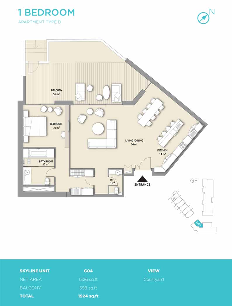 | 1 Bedroom | All | 1 bedroom type D 1924 | 1924.00 Sq Ft | Apartment | |
