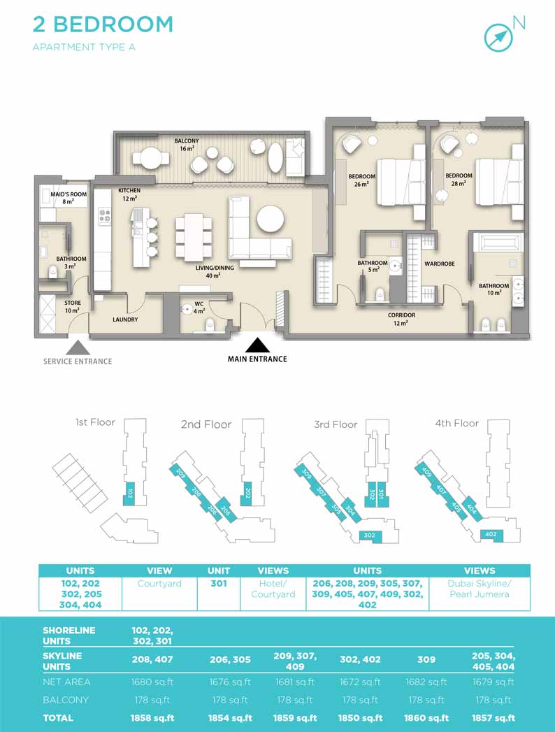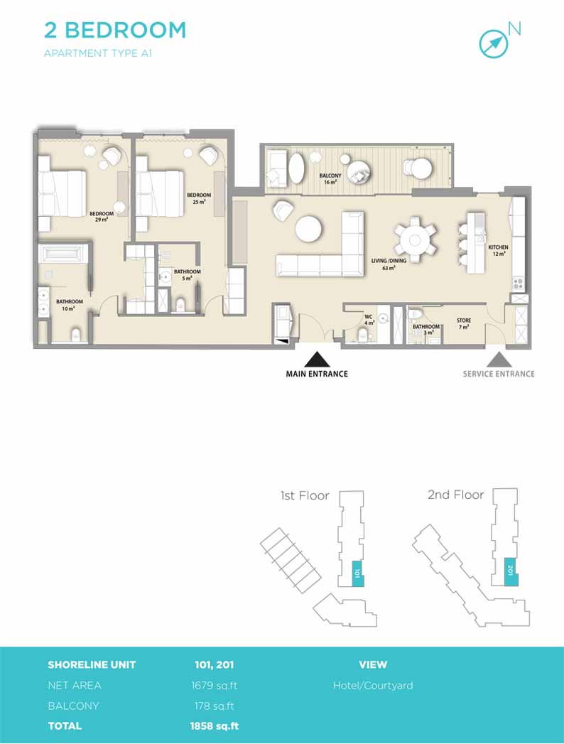 | 2 Bedrooms | All | 2 bedroom type A1 1858 | 1858.00 Sq Ft | Apartment | |