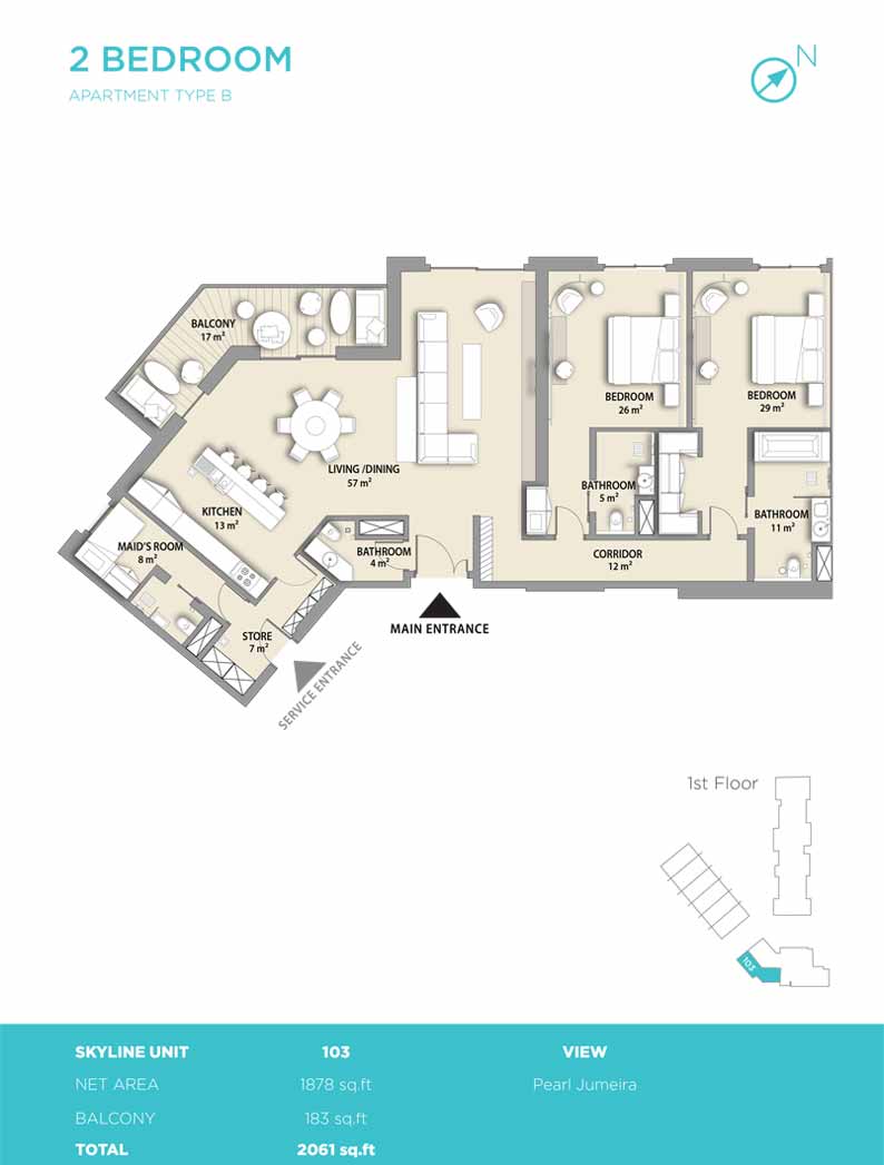 | 2 Bedrooms | All | 2 bedroom type B 2061 | 2061.00 Sq Ft | Apartment | |