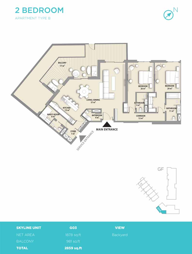 | 2 Bedrooms | All | 2 bedroom type B 2859 | 2859.00 Sq Ft | Apartment | |