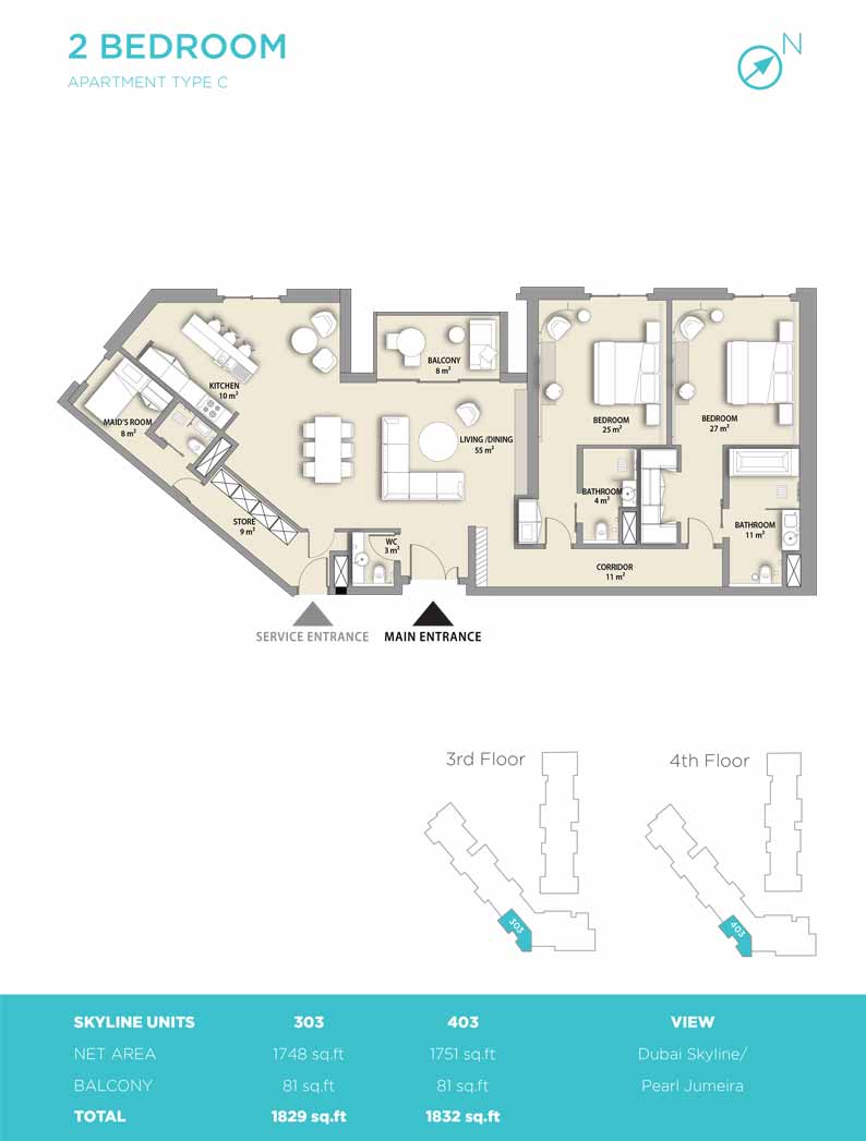 | 2 Bedrooms | All | 2 bedroom type C 1832 | 1832.00 Sq Ft | Apartment | |