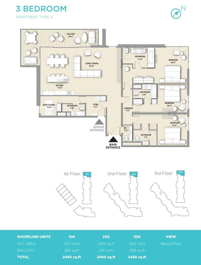 | 3 Bedrooms | All | 3 bedroom type A 2460 | 2460.00 Sq Ft | Apartment | |