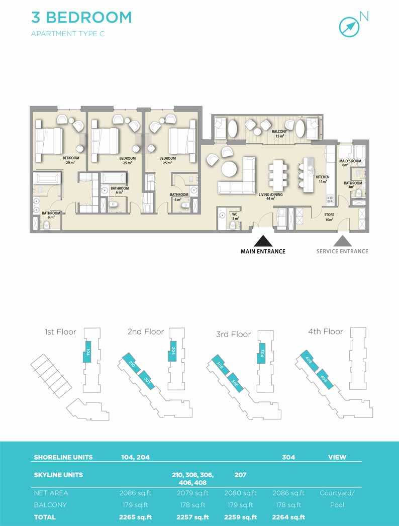 | 3 Bedrooms | All | 3 bedroom type C 2265 | 2265.00 Sq Ft | Apartment | |