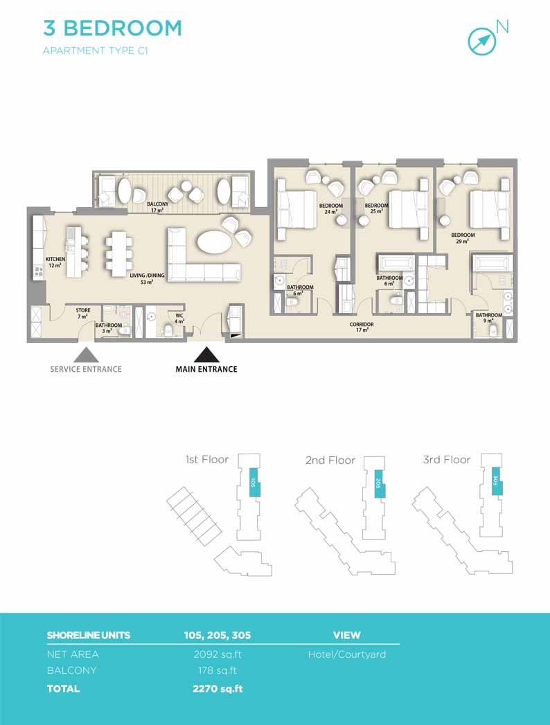 | 3 Bedrooms | All | 3 bedroom type C1 2270 | 2270.00 Sq Ft | Apartment | |