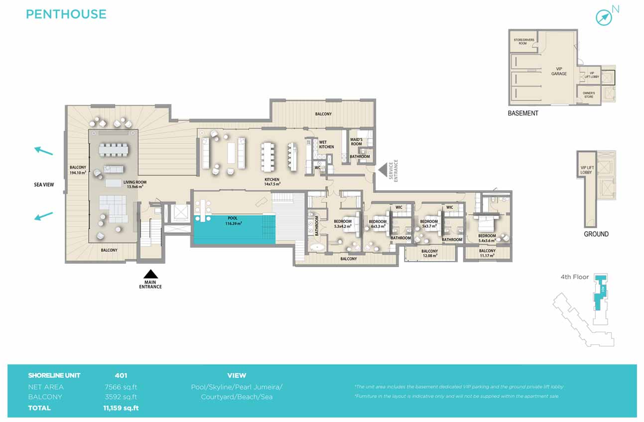 | 4 Bedroom | All | 4 Bedroom Penthouse 11159 | 11159.00 Sq Ft | Apartment | |