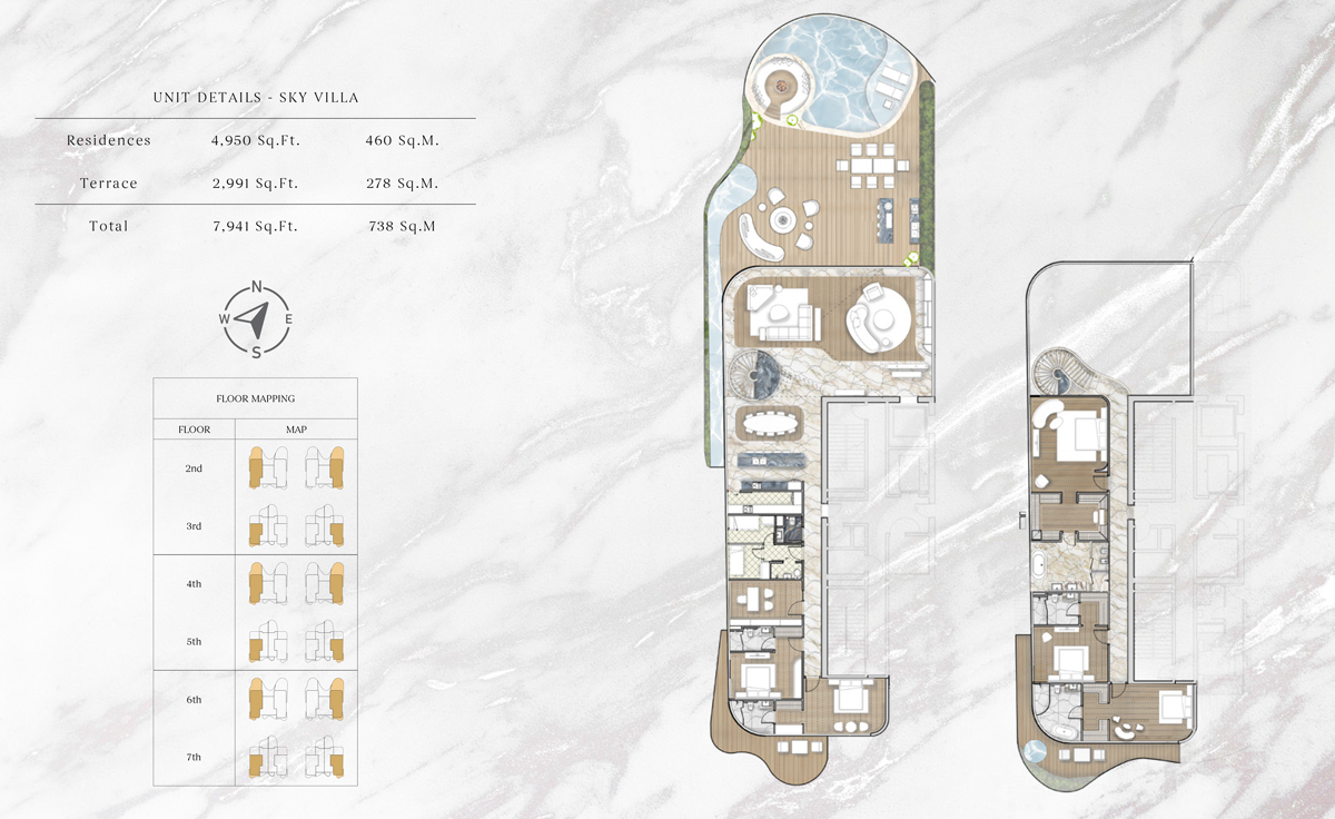One Crescent offers 3, and 4-bedroom penthouses, 5-bedroom sky villas, and 6-bedroom sky mansions with modern designs developed by AHS Properties in Palm Jumeirah, promising a luxury living experience. Live in comfort and style, where every corner displays elegance and makes everyday life easy.