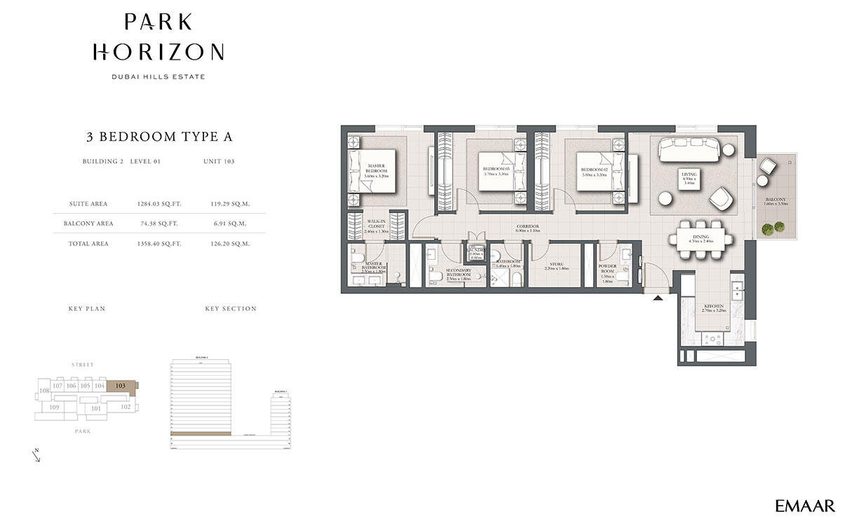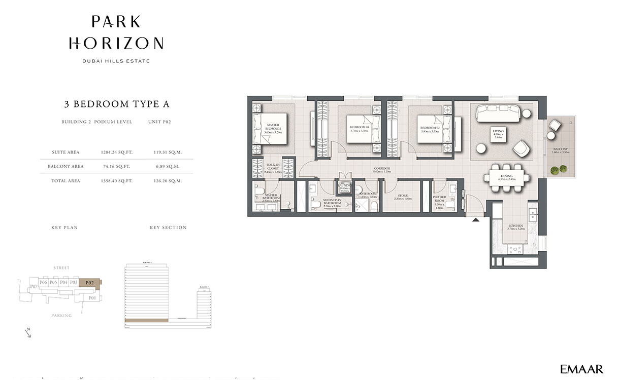 Building 2 3 Bedrooms Type A, Podium Level, Unit P02 1358.40 Sq Ft Apartment