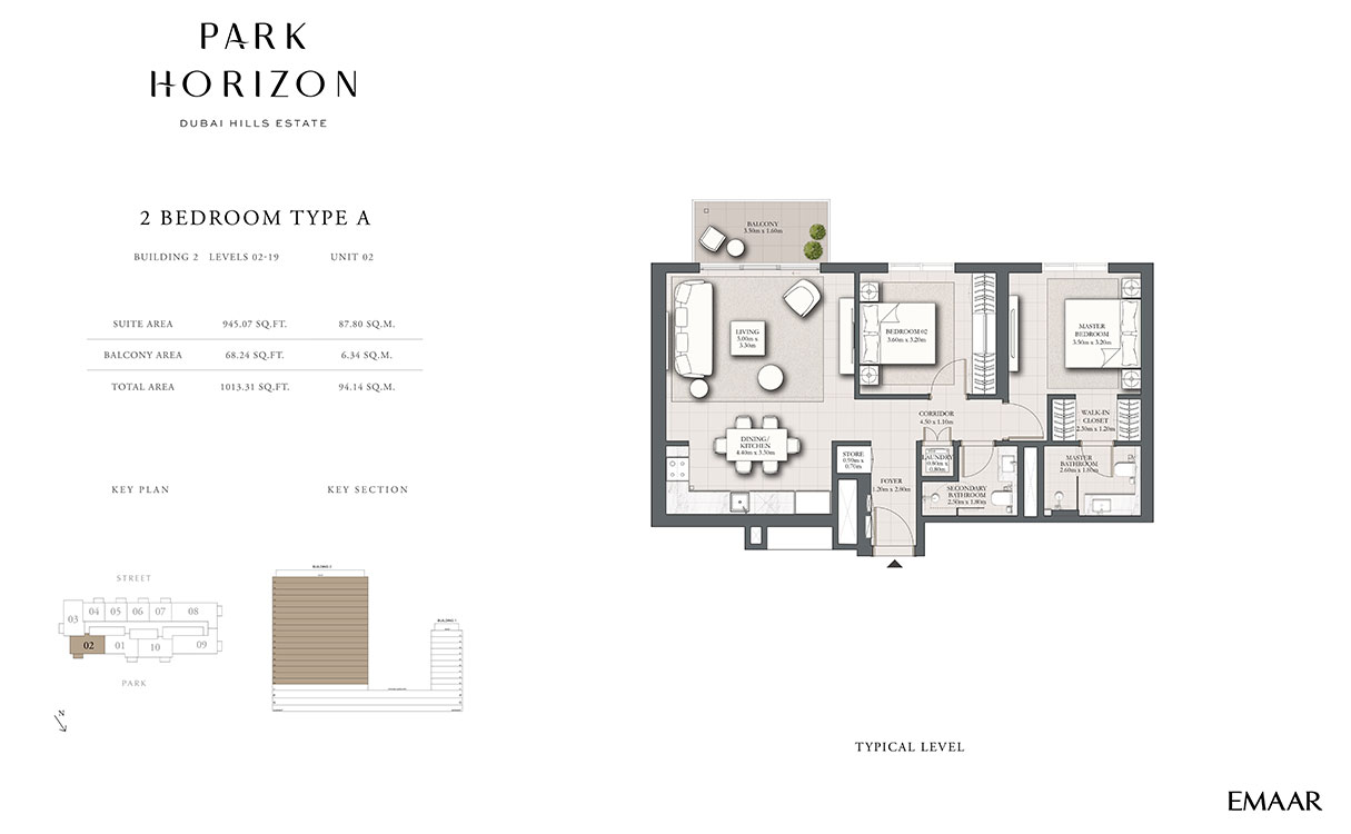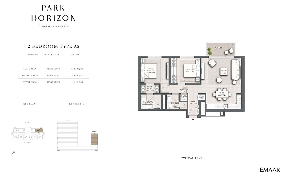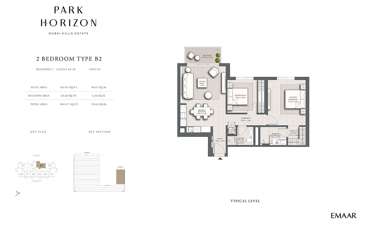 Building 1 2 Bedrooms Type A2, Levels 02-10, Unit 02 933.40 Sq Ft Apartment