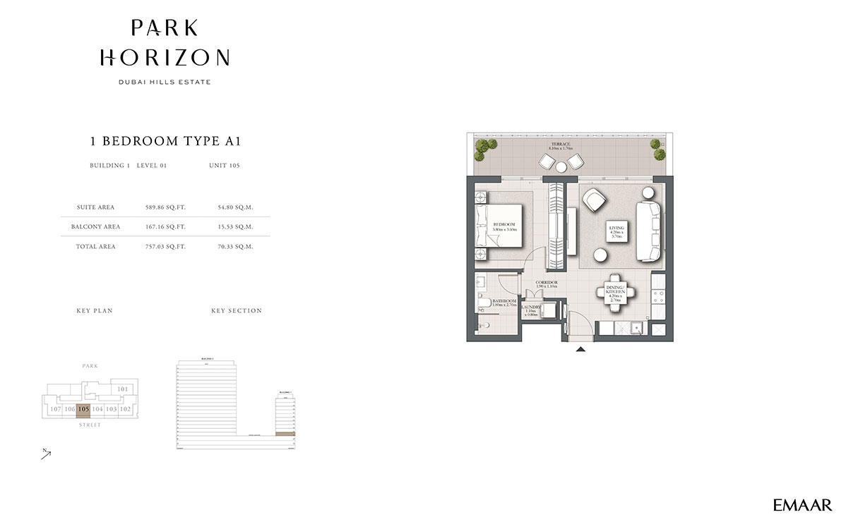Building 1 1 Bedroom Type A1, Level 01, Unit 105 757.03 Sq Ft Apartment
