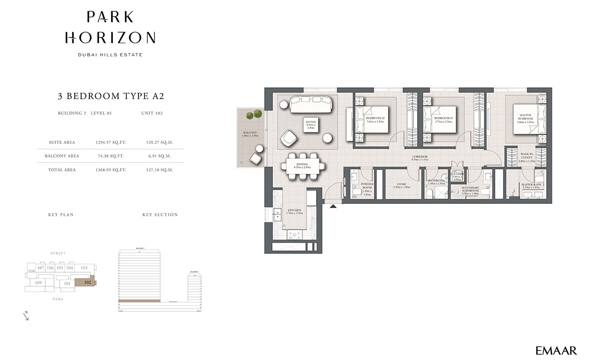 Building 2 3 Bedrooms Type A2, Level 01, Unit 102 1368.95 Sq Ft Apartment