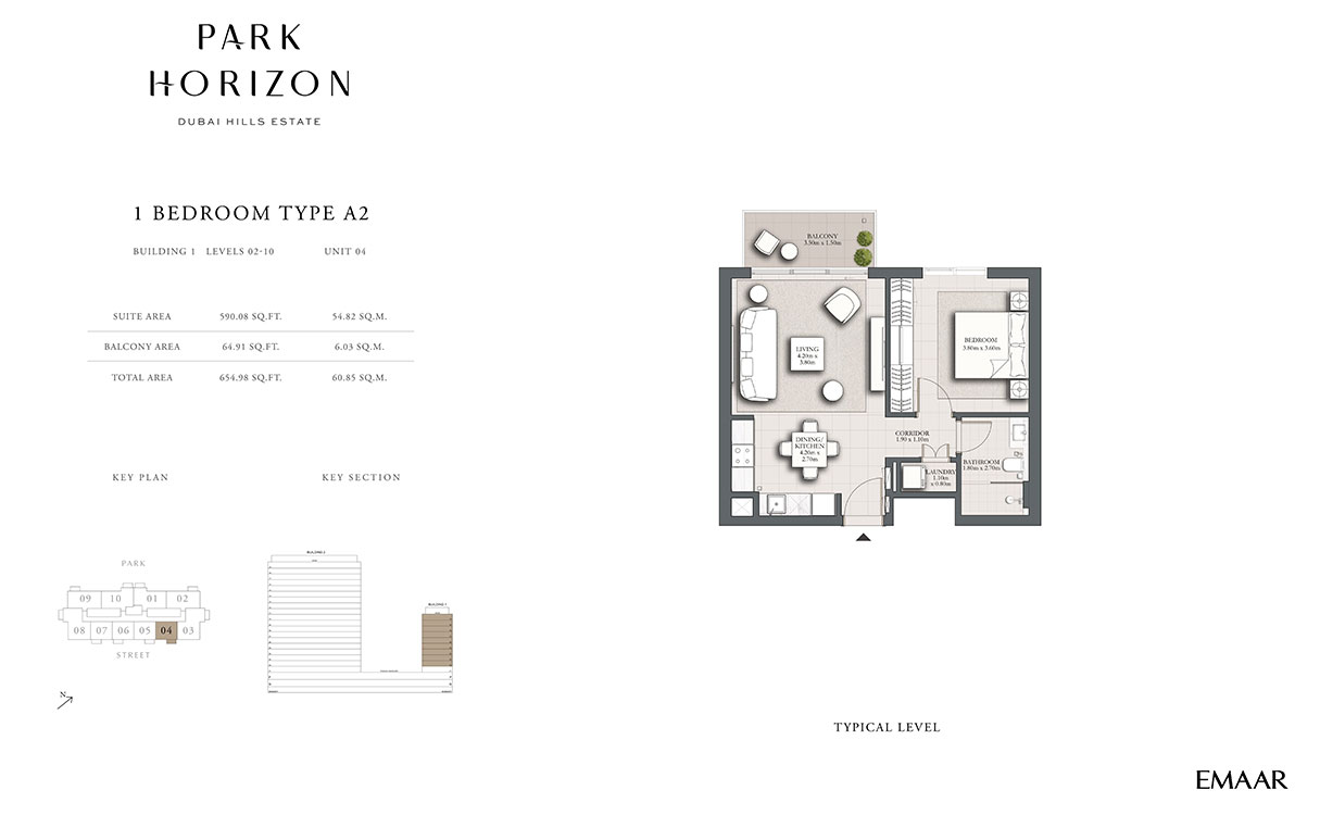 Building 1 1 Bedroom Type A2, Levels 02-10, Unit 04 654.98 Sq Ft Apartment