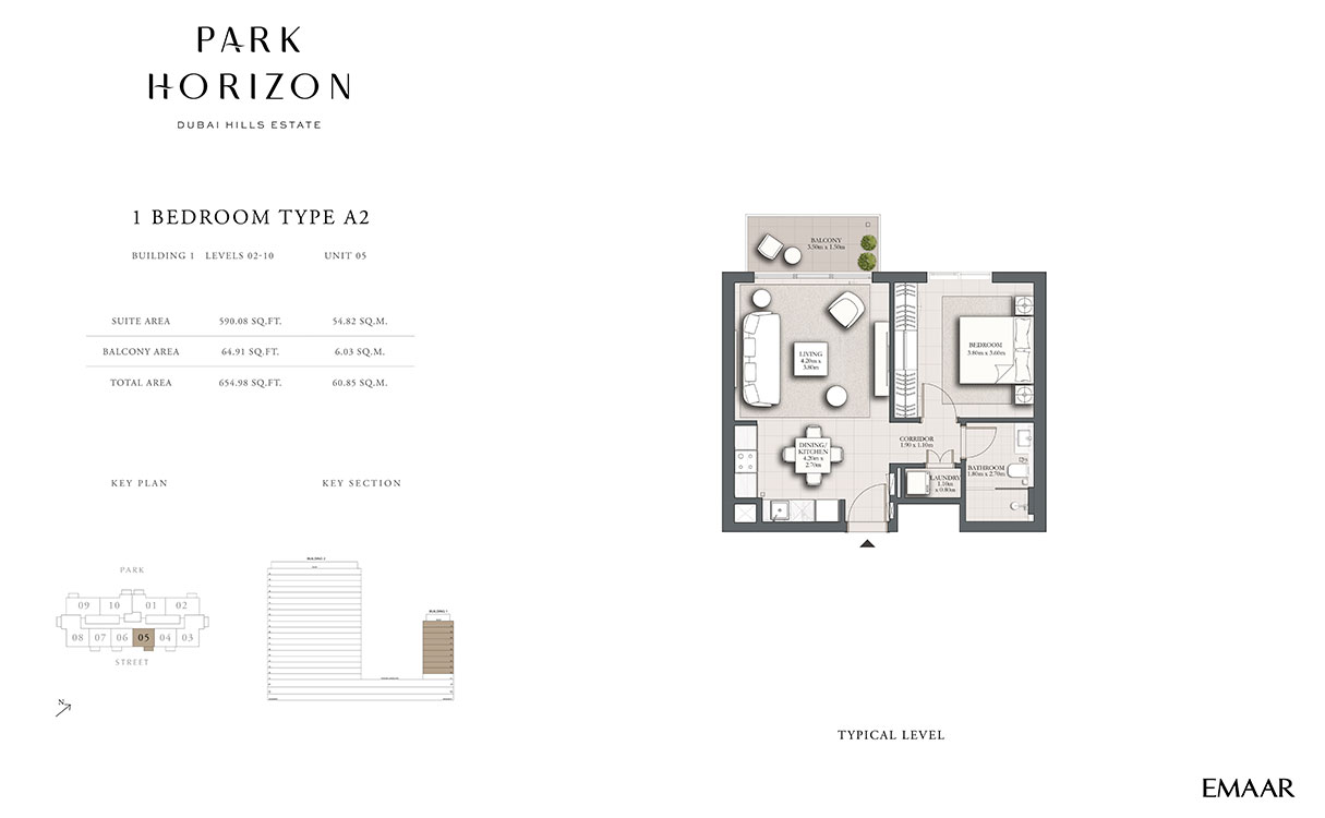 Building 1 1 Bedroom Type A2, Levels 02-10, Unit 05 654.98 Sq Ft Apartment