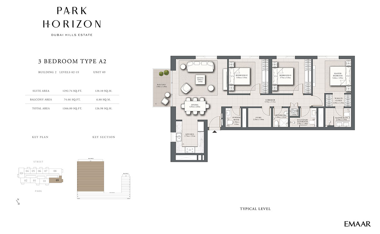 Building 2 3 Bedrooms Type A2, Levels 02-19, Unit 09 1366.80 Sq Ft Apartment