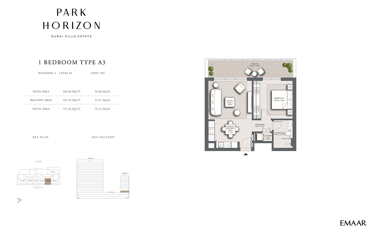 Building 1 1 Bedroom Type A3, Level 01, Unit 103 757.46 Sq Ft Apartment