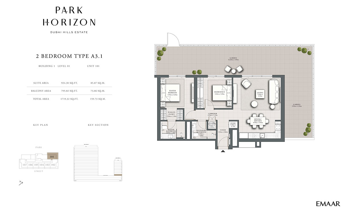 Building 1 2 Bedrooms Type A3.1, Level 01, Unit 101 1719.32 Sq Ft Apartment